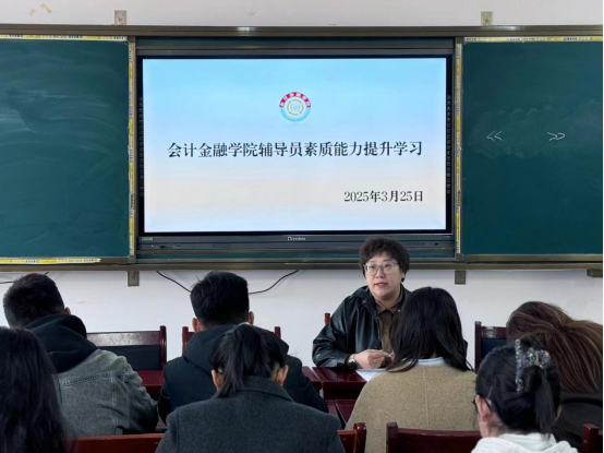 为深入贯彻落实立德树人根本任务,进一步提升辅导员队伍专业化、职业化水平,3月25日,会计金融学院组织全体专职辅导员开展辅导员素质能力提升学习。学生管理副院长组织学习,带领全体辅导员深入研读《yl88858cc永利官网班级管理量化考核及辅导员管理办法考核办法(修订)》和《yl88858cc永利官网关于加强辅导员队伍建设的实施意见(修订)》两份文件。