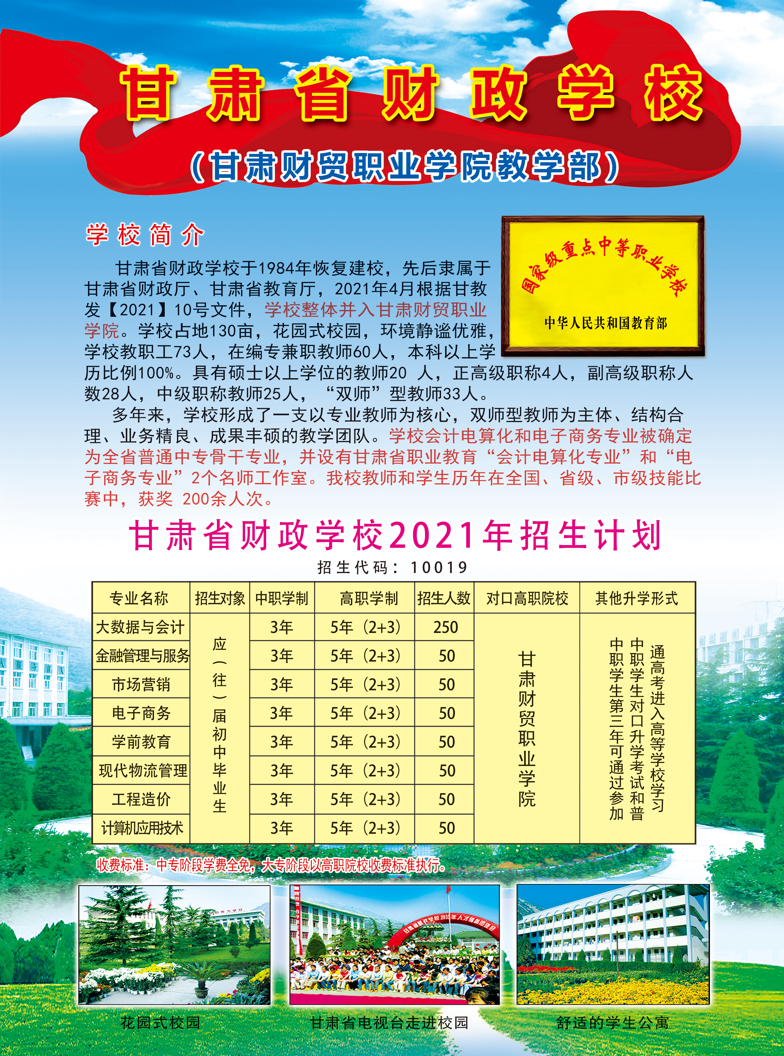 甘肃省财政学校2021年招生简章
