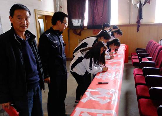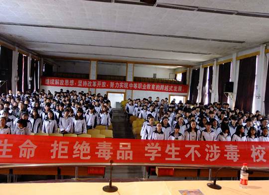 根据省教育厅和省禁毒委有关通知精神,为切实推进我校禁毒宣传教育,加强我校学生思想道德建设,促进我校创建“甘肃省德育示范学校”工作,4月25日下午,由我校学生科、保卫科组织,邀请了辖区彭家坪派出所民警(我校禁毒宣传员)为我校全体师生举行了一场“珍爱生命,远离毒品;学生不涉毒,校园无毒品”的禁毒宣传教育大会,会后广大师生一起进行了签名。