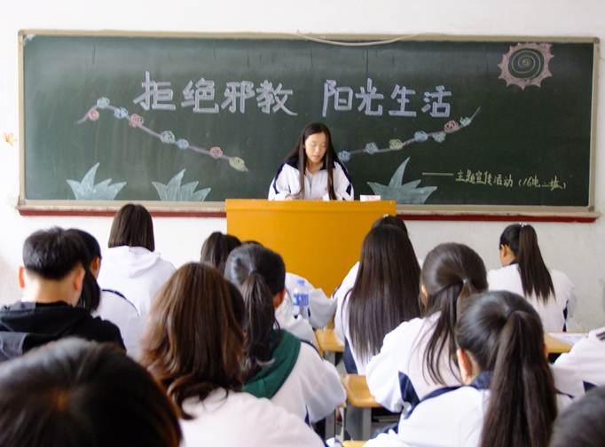 印发宣传资料,进行学习;各班级召开“崇尚科学,抵制邪教”为主题的班团演讲会,用生动鲜活的实例教育学生树立“崇尚科学,抵制邪教”的观念,增强法纪意识,远离邪教。