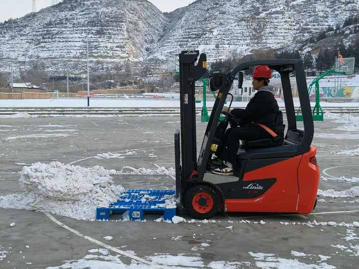 同时,物流专业的师生还开出了叉车来助力。既提高了清扫效率,老师也借机开展实践教学,使同学们在技能上得到了有效的锻炼和提升。