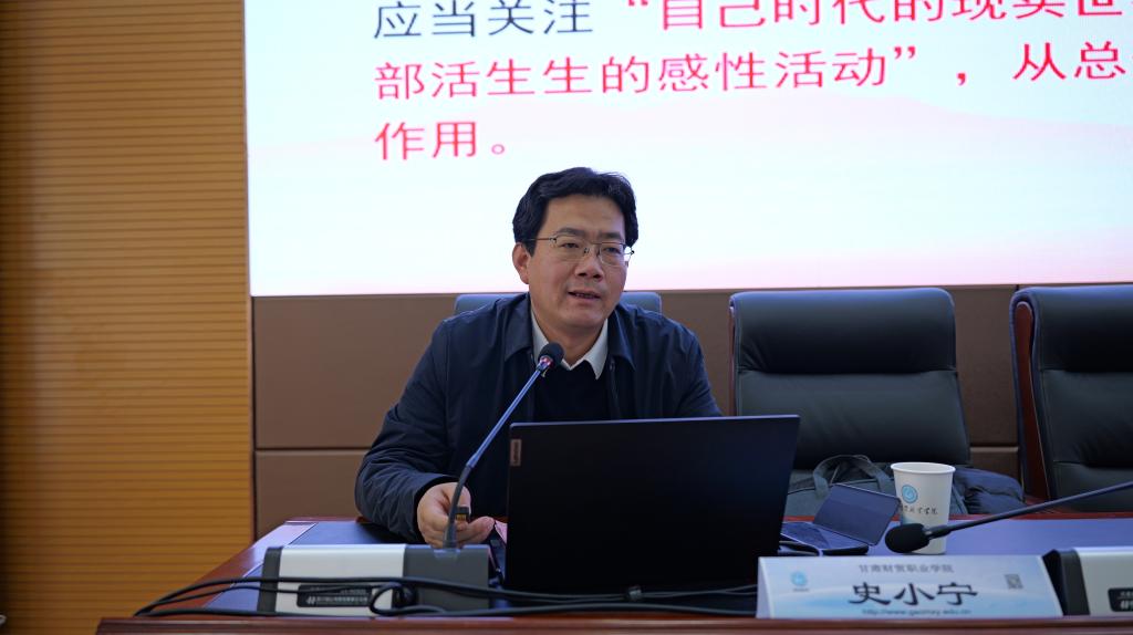 交流结束后,史小宁院长为我院教师作了题为《习近平新时代中国特色社会主义思想的世界观和方法论》讲座。他从辩证关系、重要意义、内容构成、实践指向四个方面全面系统阐述了习近平新时代中国特色社会主义思想的世界观和方法论,让我院教师更加直观深刻地领悟到党和国家最新理论发展和创新的成果。