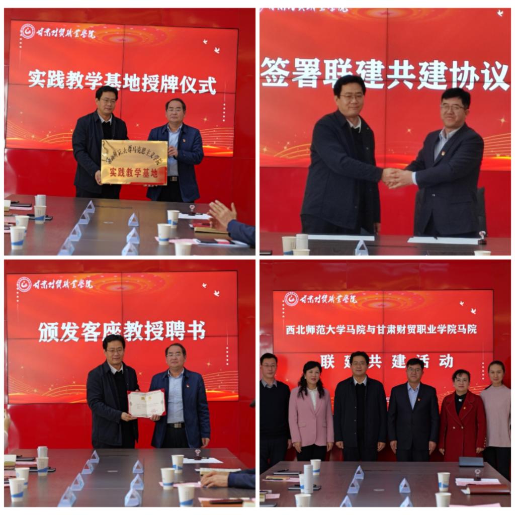 随后,两校马院签订了共建协议,并举行了西北师范大学马克思主义学院实践教学基地授牌和客座教授聘任仪式,聘任史小宁为我院马院客座教授。