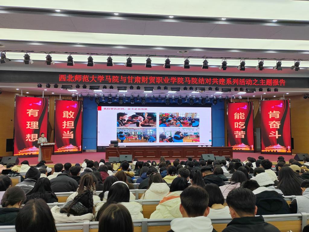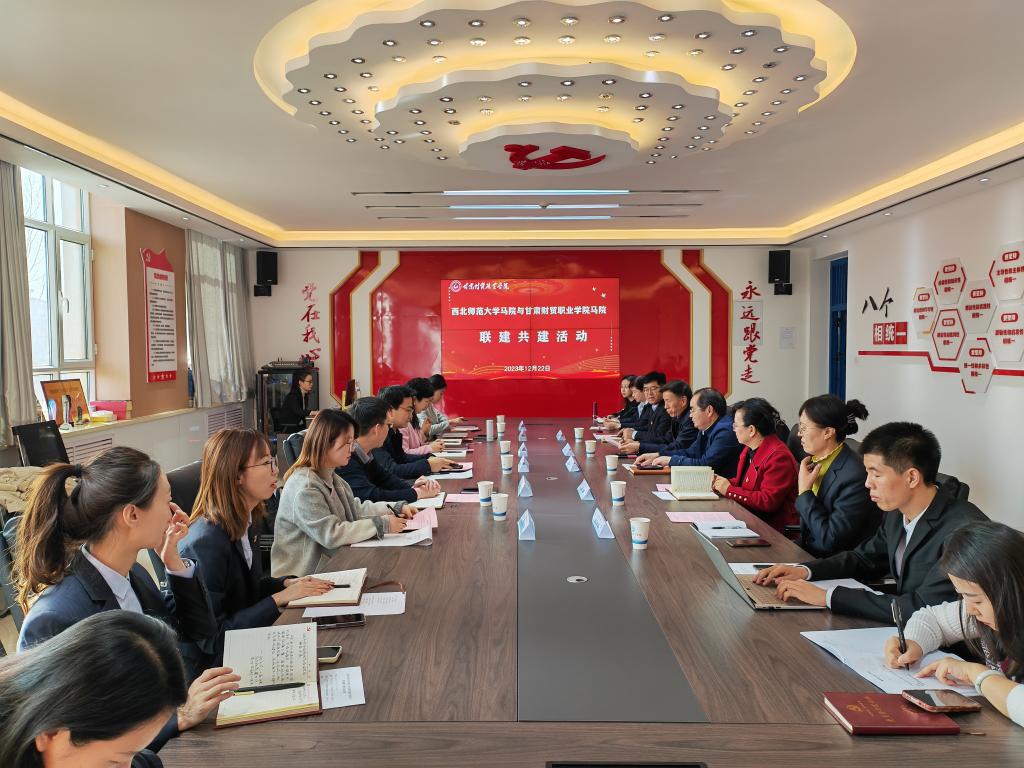 为贯彻落实习近平总书记关于加强思想政治理论课建设的重要论述,深化新时代思想政治理论课创新创优工作,充分发挥省级重点马克思主义学院的示范引领作用,提升我院马院建设水平,2023年12月22日,西北师范大学马院与我院马院举行联建共建活动,西北师范大学马院院长、教授史小宁,党委副书记王宏渊,副院长、副教授王树亮,副院长、云亭青年教授马乔恩,办公室主任毛娅楠,硕士研究生刘莹雪参加;我院党委书记周和平,纪委书记任世伟出席共建签约仪式。马院全体人员,各支部委员,全体辅导员及学生代表800余人参加活动。