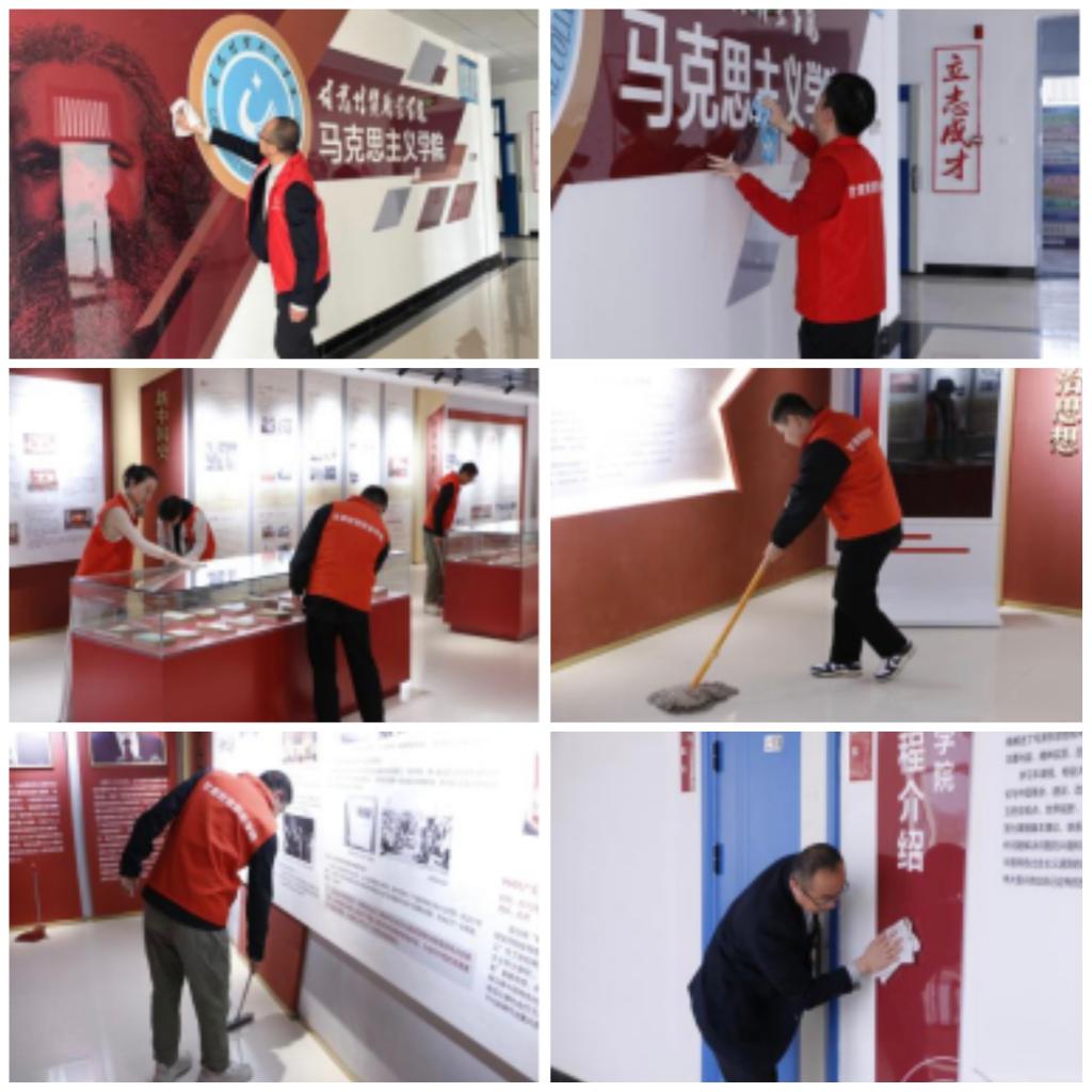 集中学习环节结束后,全体党员携手“星星之火”社团学生,积极投身到笃学楼等地的卫生清洁、义务帮扶等志愿服务活动中。教师们纷纷拿起卫生工具,以饱满的热情和昂扬的斗志投入到服务中,用实际行动充分彰显了志愿服务的强大力量和党员的责任担当。