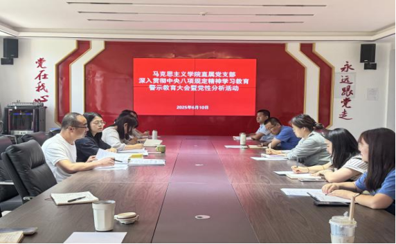 6月10日,马克思主义学院直属党支部召开深入贯彻中央八项规定精神学习教育警示教育大会暨党性分析活动,旨在全面贯彻党的二十届三中全会部署,持续巩固拓展学习贯彻习近平新时代中国特色社会主义思想主题教育成果,进一步深化党纪学习教育成效,持之以恒落实中央八项规定精神,推动我院作风建设常态化、长效化。会议由党支部书记张金林主持,全体党员和入党积极分子参会。
