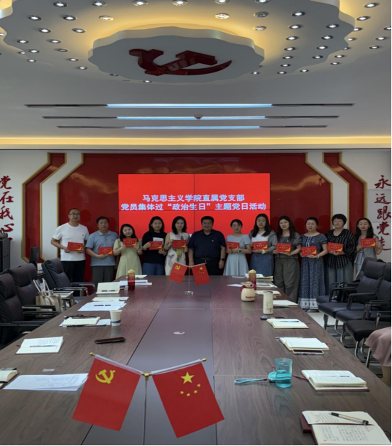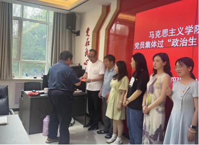 为庆祝中国共产党成立104周年,强化党员意识,激发使命担当,2025年7月1日下午,马克思主义学院直属党支部在党员活动室举办“铭记入党初心,践行使命担当”党员集体过“政治生日”主题党日活动。学院全体党员和入党积极分子参加,活动由张金林书记主持。