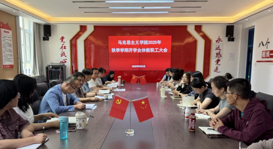 2025年9月2日下午,马克思主义学院在207党员活动室隆重召开2025年秋季学期开学全体教职工大会。学校党委副书记郭志强莅临指导,学院全体教职工齐聚一堂,共话新学期发展。会议由学院院长李颖主持。