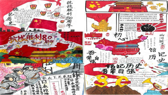 本次活动以“铭记历史,缅怀先烈,珍爱和平”为主题,旨在通过艺术创作的形式,引导青年学子铭记抗战历史,传承红色基因,激发爱国情怀与历史使命感。活动期间,同学们积极参与,充分发挥自己的创意和绘画才能,将抗战历史元素与现代艺术表现手法相结合,创作出了一幅幅主题鲜明、内涵丰富的画报作品。这些作品或展现抗日先烈的英勇事迹,或描绘抗战时期的艰苦岁月,或表达对和平生活的珍视,生动地诠释了抗战精神的深刻内涵。