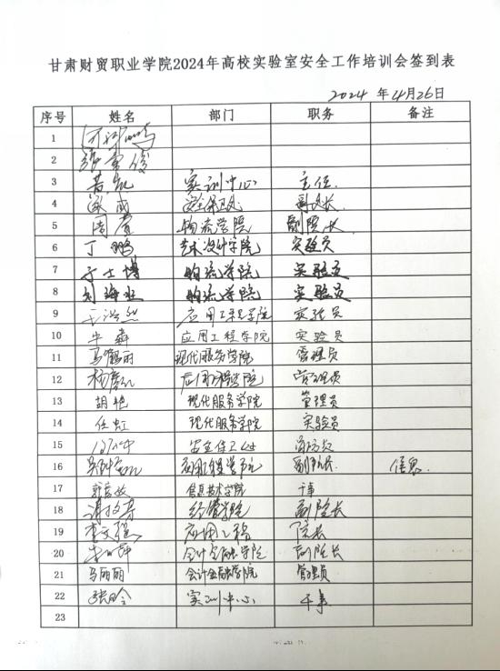学院实验室安全工作相关校领导、实训中心、保卫处、应用工程学院、物流学院、艺术设计学院、信息技术学院、现代服务学院、经济管理学院及会计金融学院相关教师参加本次线上培训会。全体参会人员通过视频聆听了专家对《高等学校实验室安全规范》《高等学校实验室安全分级分类管理办法(试行)》等文件及本年度实验室安全重点工作的详细解读,对本年度实验室安全重点工作的部署安排。