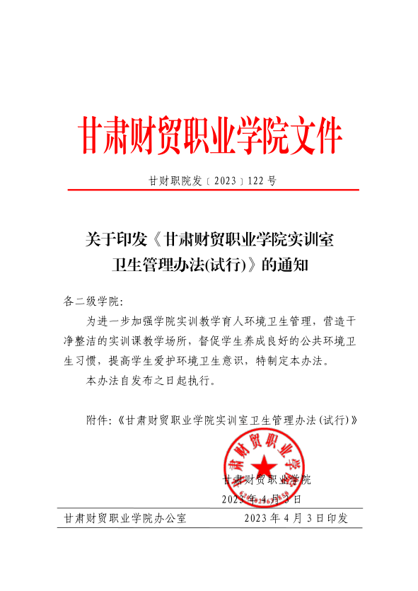 关于印发《yl88858cc永利官网实训室卫生管理办法(试行)》的通知