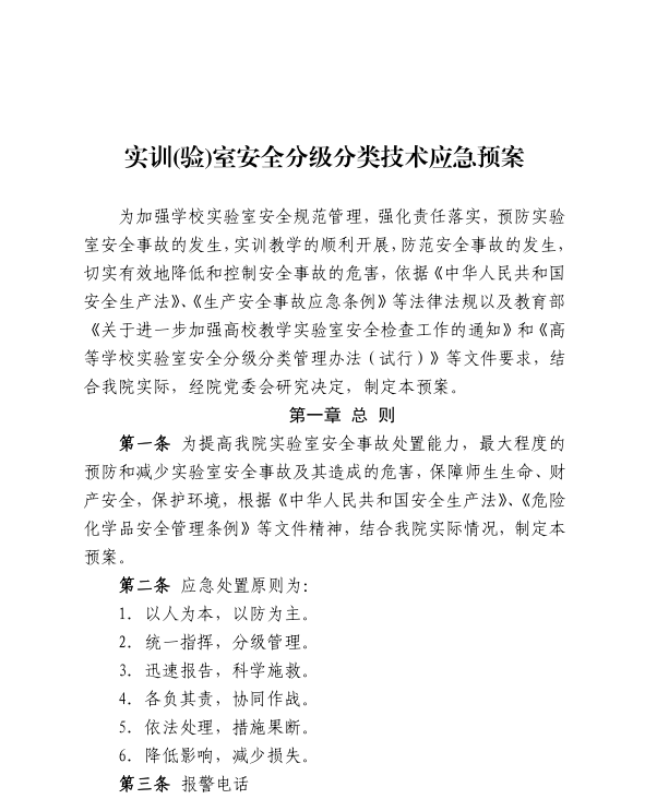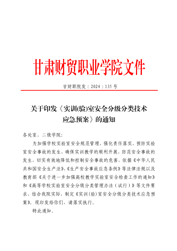 关于印发《实训(验)室安全分级分类技术应急预案》的通知