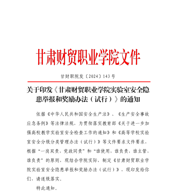 关于印发《yl88858cc永利官网实验室安全隐患举报和奖励办法(试行)》的通知