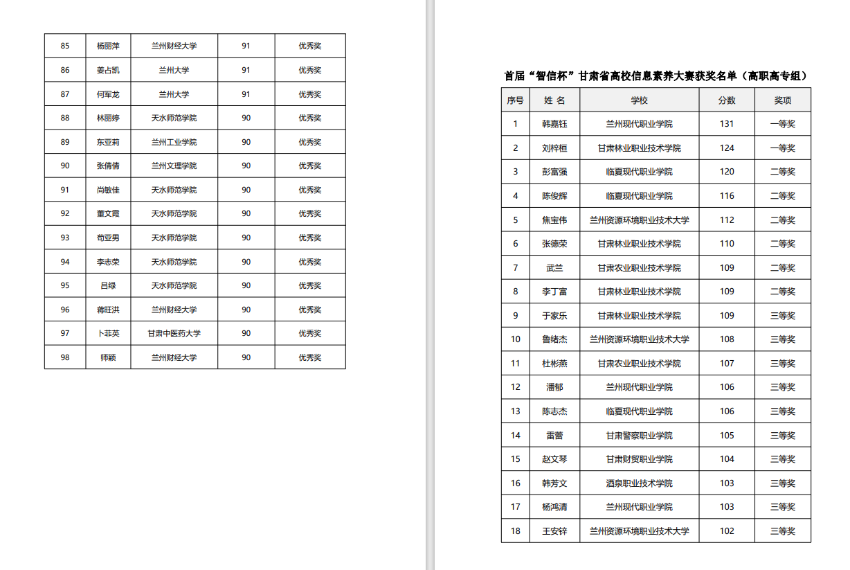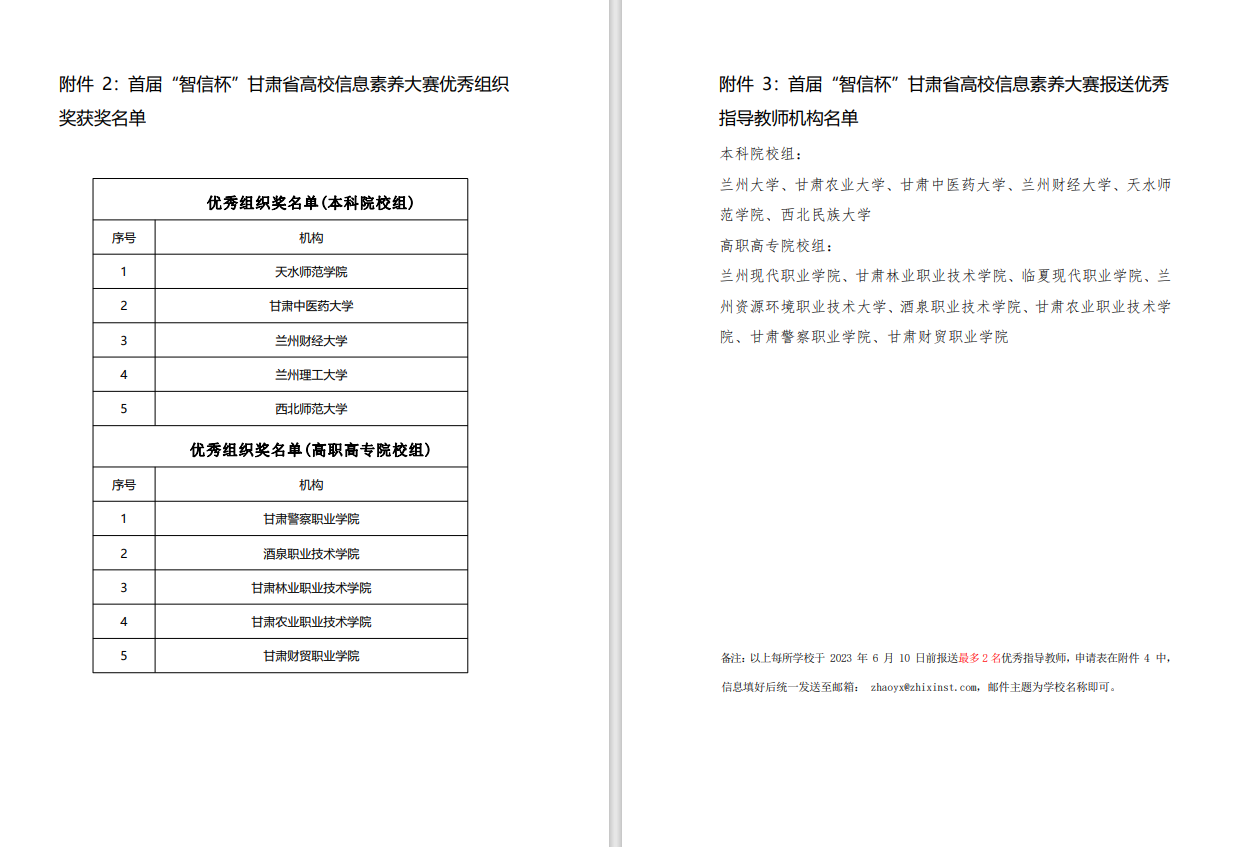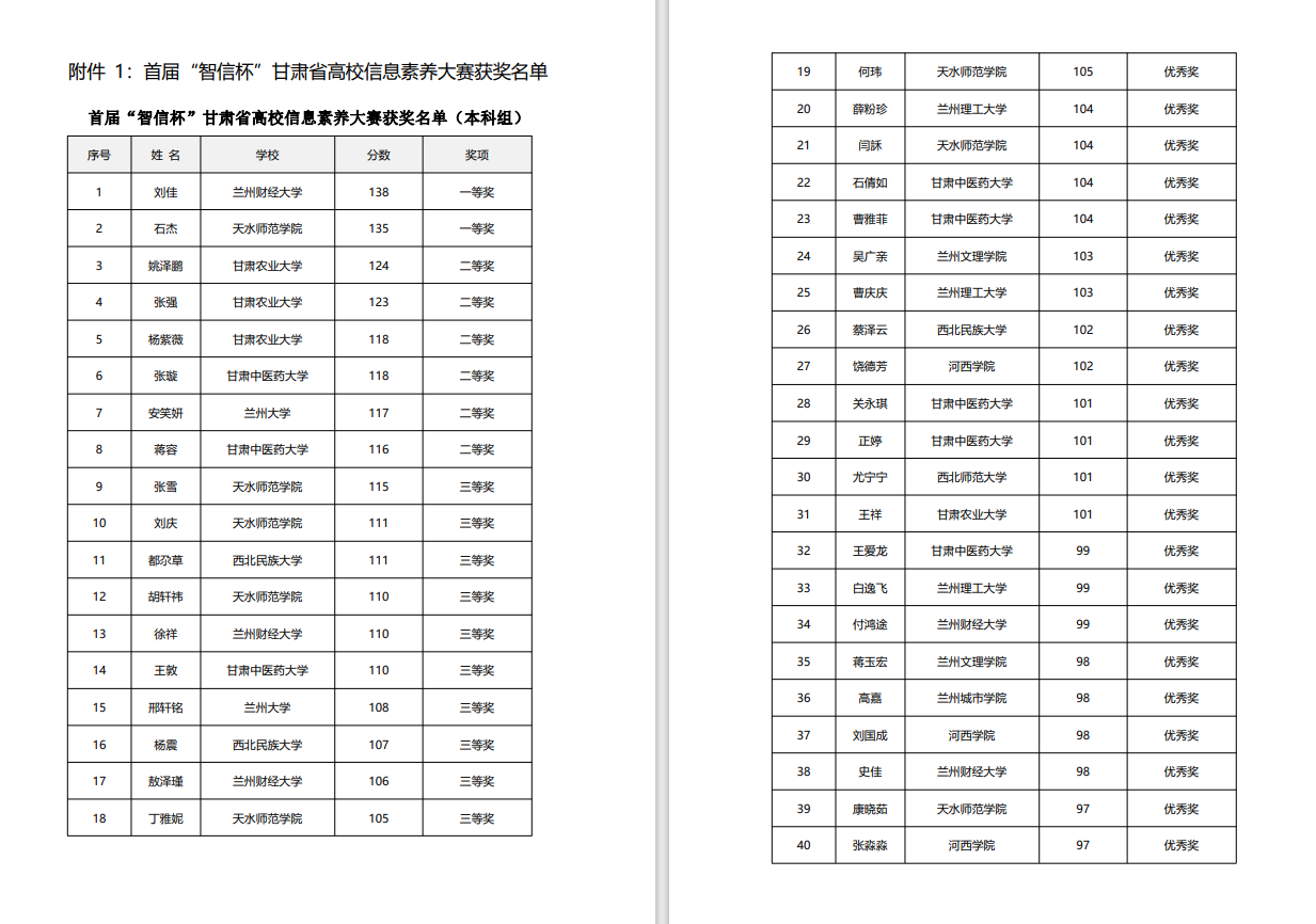 关于首届“智信杯”甘肃省高校信息素养大赛获奖名单及优秀指导教师申报的通知