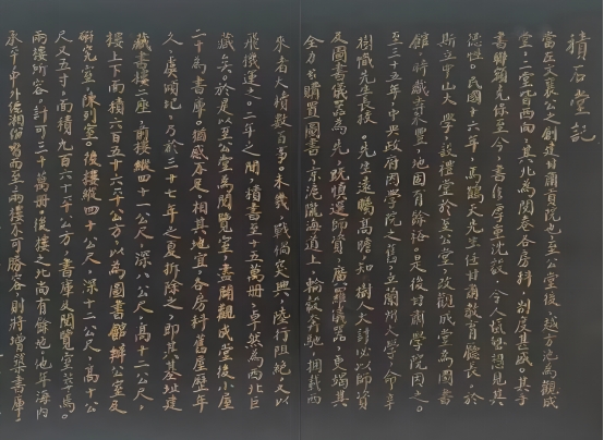 《积石堂记》是顾颉刚先生在国立兰州大学任教期间,应辛树帜校长之请为新落成的图书馆(辛树帜校长名之为“积石堂” )而作的题记。其碑文所刻,既是历史的见证,也是对图书馆重要性的深刻诠释。