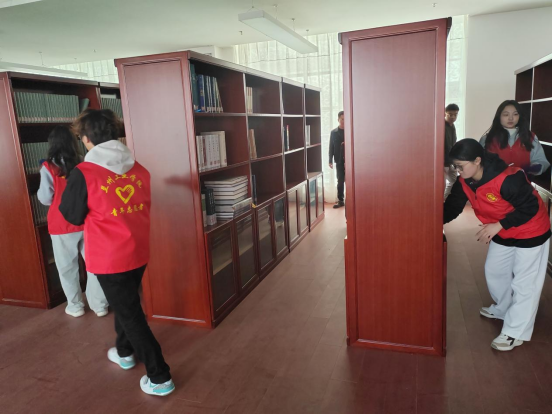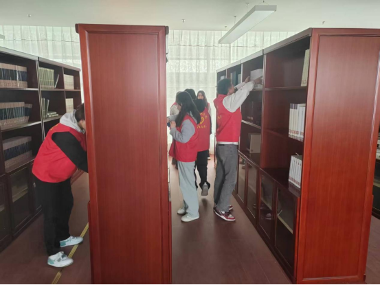 活动当天,志愿者们身着统一的志愿者服装,精神饱满地来到了共享区图书馆。在图书馆工作人员的简要培训后,他们迅速投入到各自的志愿服务岗位中。活动中,志愿者们分工明确,各司其职。一部分志愿者负责图书的整理与归类,他们细心地将散落的书籍归位,确保每一本书都能找到属于自己的“家”。另一部分志愿者则负责引导读者,他们耐心地解答读者的咨询,帮助读者快速找到所需的图书资料。还有志愿者负责图书馆的清洁工作,他们手持扫帚、抹布,将图书馆的每一个角落都打扫得干干净净。