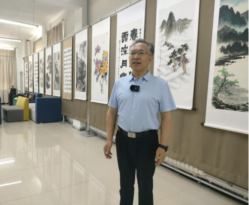 对于此次“书画无疆陇台大展”进校园选择在我校举办,张梦涛院长表示“书画艺术是中华优秀传统文化的重要载体,而陇台两地的书画作品更是蕴含着深厚的地域文化底蕴与血脉亲情。我校作为培养财经商贸人才的院校,始终认为“德技并修”不仅是技能的锤炼,更包括文化素养的培育。我们希望通过此次展览,让学生在专业学习之外,能近距离感受书画艺术的魅力,在笔墨丹青中理解中华优秀传统文化的精髓,增强文化自信与民族认同感。而且对学生而言,这既是一次“沉浸式”的文化熏陶,也是一次难得的精神滋养。一方面,学生能通过欣赏陇台两地艺术家的作品,了解不同地域的文化特色,拓宽文化视野;另一方面,书画中传递的家国情怀、人文精神,能潜移默化地影响学生的价值观,帮助他们在未来的职业道路上,既具备扎实的专业能力,也拥有深厚的文化底蕴,成长为更具综合素养的财经商贸人才。文化育人是我校办学理念的重要组成部分,未来我们会持续搭建更多文化交流平台,不仅会引入书画、非遗等传统文化展览,还会开展相关讲座、实践活动,让文化教育融入校园生活的方方面面,真正实现以文化人、以美育人的目标。”