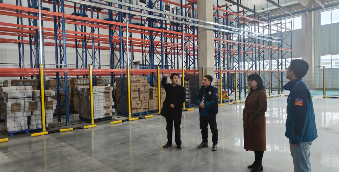 座谈会后,在企业负责人的陪同下学院领导及工作人员参观了甘肃国际物流集团兰州物流园的智慧物流仓储中心。工作人员详细讲解了智能化仓储管理系统、自动化分拣设备及现代物流技术的应用场景,展示了智慧物流的高效运作模式。学院领导表示将积极推动学院教学内容与企业实际需求相结合,进一步提升学生的实践能力和就业竞争力。