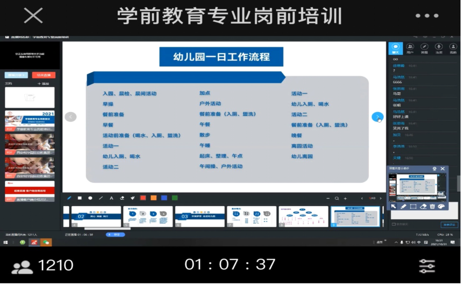 张赛红园长结合多年教学和管理经验,以幼儿教师--无悔的选择、怀揣梦想--走进幼儿园、坚定信念--为爱护航等模块,为同学们全方位描述了作为一名幼儿教师的职业蜕变路程,以及初入职场如何保持学习的心态、如何看待薪资待遇、学前教育专业的职场发展空间等内容,从职场角度打开了审视学前教育专业的一扇窗。