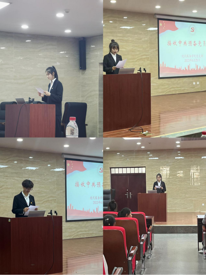 为进一步加强党员队伍建设,学习贯彻执行党的二十大精神,增强思想政治教育。根据《中共党员发展条例》和党支部发展党员工作计划,现代服务学院党支部于2023年6月25日下午召开党员大会,讨论接收中共预备党员会议暨预备党员转正会议。
