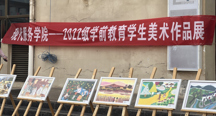 为丰富校园生活,培养学生的专业素养,激发学生对绘画艺术的热情,提高学生的审美修养和人文素养,6月27日上午11时,现代服务学院于东食堂前小广场举行“琴艺书画,学前魅力”22级学前教育专业美术作品展,本次展览邀请院领导及广大师生前来参观。