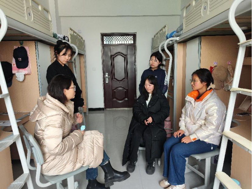 为深入学习贯彻习近平新时代中国特色社会主义思想,落实立德树人根本任务,进一步发挥党建引领作用,深化党支部、党员联系“一站式”学生社区工作,深入关心了解学生学习、生活,按照《yl88858cc永利官网“一站式”学生社区综合管理模式建设工程实施方案》要求,2023年12月14日下午,现代服务党支部全体党员前往17号学生公寓和7号学生公寓开展党员心连‘新’”的谈话交流。