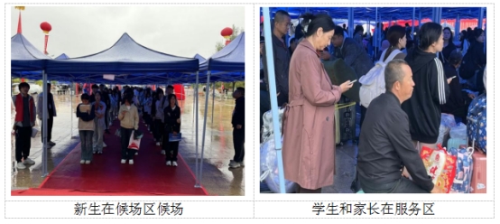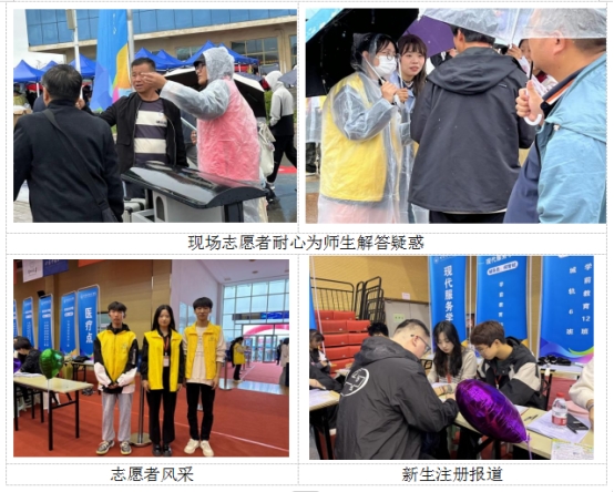 报道现场志愿者耐心同学生和家长讲解入学注册事宜,辅导员为新生详细讲解新学期入学安排。