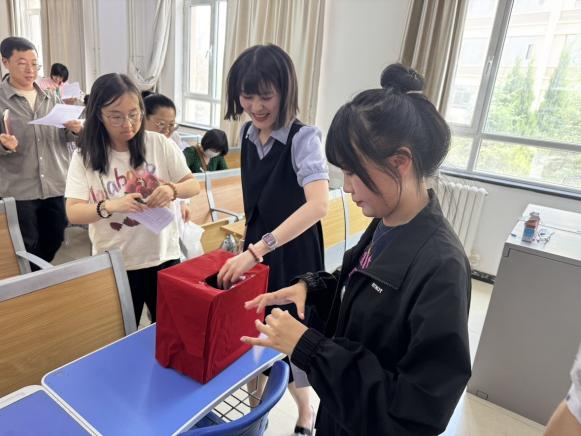 会议先由现代服务学院委员会组组长向全体成员宣读了两代会代表选举规则,重点强调了代表资格与名额分配、选举程序和纪律要求;随后由全体工会小组成员进行投票。在场成员依次领取选票、填写并投入票箱,过程规范有序。