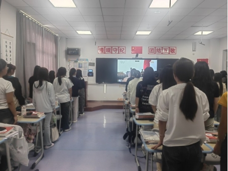 当激昂的《义勇军进行曲》奏响,五星红旗在天安门广场冉冉升起,各班教室内全体师生自发起立,庄严肃立行注目礼;当受阅部队迈着铿锵有力的步伐依次通过,先进装备方阵展现大国重器的磅礴气势时,教室内不时响起热烈掌声。这场阅兵式不仅展现了国家的强大实力与民族的精神风貌,更让师生们深刻体会到 “和平来之不易,复兴任重道远” 的内涵。