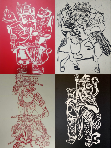 阴刻与阳刻雕刻纸板版画门神 每幅30cm*40cm