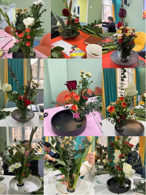 会后,各部门负责人与辅导员一起在轻松的气氛中学习了中式插花。