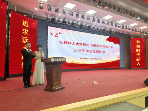 为深入贯彻落实习近平新时代中国特色社会主义思想和习近平总书记关于深化思政课改革创新的重要指示精神,发挥思政课立德树人关键课程作用,充分调动大学生学习思政课的积极性、主动性和创造性。4月28日下午,现代服务学院在一号教学楼报告厅成功举办“弘扬伟大建党精神,凝聚青春奋进力量”大学生讲思政课比赛。马克思主义学院、现代服务学院相关负责人、思政课教师及学生700余人参加本次比赛。