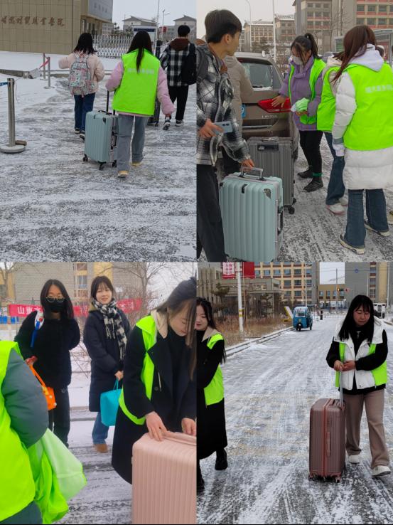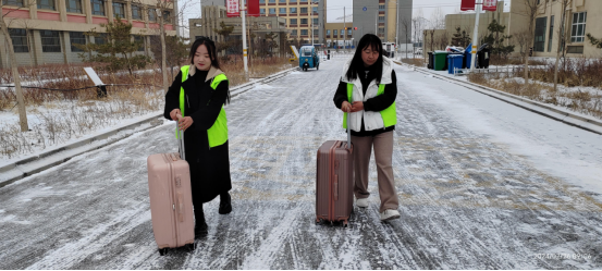 在学校南门处便能看见学生会志愿者们忙碌的身影,一大早,志愿者们行李搬运任务等各项工作。新区初春寒冷的天气里,身着马甲的志愿者积极践行我为同学做实事的精神,将志愿服务落到实处,成就甘于奉献的青年榜样。搬运行李的志愿者们接过返校学生手中的行李,全程陪护助力他们返校的“最后一公里”,用实际行动书写了我院学子的使命和担当。在此次行李搬运工作中,志愿者们的付出获得了同学们和领导们的一致认同和肯定。
