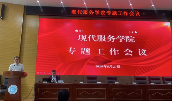 5月27日下午,现代服务学院在行政楼二楼报告厅召开专题工作会议。会议由党总支书记主持,全体教师参加会议,王浩副校长应邀出席并讲授专题党课。