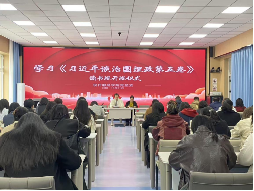 开班仪式上,全体与会党员集体学习了习近平总书记在《求是》杂志上发表的重要文章《中华民族共同体的形成和发展是人心所向、大势所趋、历史必然》。随后,党总支书记宣读了《现代服务学院学习<习近平谈治国理政>第五卷实施方案》,并进行了读书班开班动员。