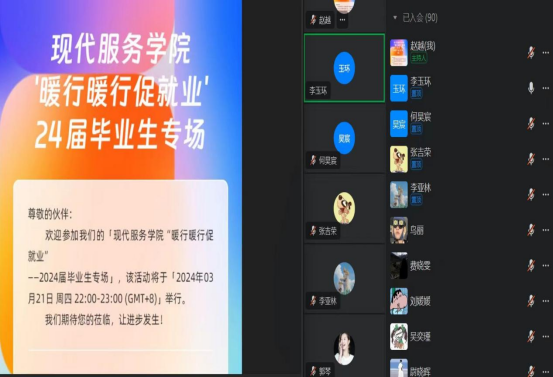 3月19日和3月21日晚20点,现代服务学院组织21级毕业生和毕业班班主任(辅导员)召开了就业专场指导座谈会,会议采用线上方式进行,共有335人参加。