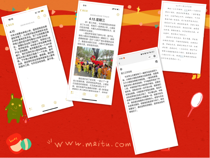 在这一周的见习期里,见习生们跟从各自指导老师全方位对保育、教学、后勤保障等岗位进行了观摩、学习、实践活动,如晨间来园、户外体锻、集体教学、区域游戏、常规管理、保育工作等。见习过程中,每位见习生虚心学习、做好笔记,积极与企业导师沟通,了解、学习幼儿园的保育环节和班级常规管理。在导师的引导下,他们也尝试独自带领幼儿开展一日生活流程,布置教室环境,做一些力所能及的幼教事务。除此之外,见习生们还会主动和孩子亲近,与孩子交流、游戏、讲故事,并在必要的时候,给予孩子适当的帮助,积极实践岗位职责。