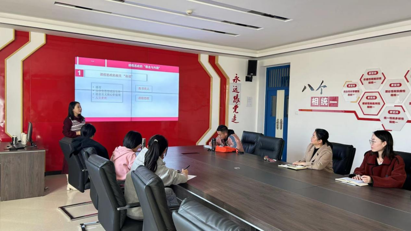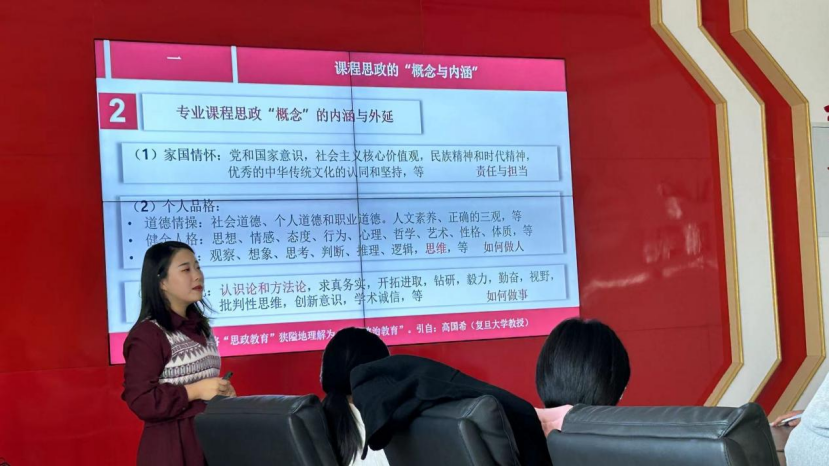 此次活动邀请了马克思主义学院包安朦老师为我们讲授培训《专业课程融入思政工作的教学设计理念与方法》。在培训学习中包安朦老师鼓励教师根据自己的学科特点和教学内容,设计与思政教育有机结合的教学内容。同时也要求教师在传授学科知识的同时,注重培养学生的社会责任感、创新精神和思辨能力。为老师们详细讲授了如何在课堂上将思政融入,了解课程思政的基本理念和要求。其次,在组织教师之间的经验交流时,包安朦老师对老师们就课程思政融入等疑惑进行了解答,也让各专业课老师们通过实例再次学习了如何在课堂上融入思政。会议最后鼓励老师们互相借鉴,共同提高。帮助教师不断改进教学方法,提高教学效果