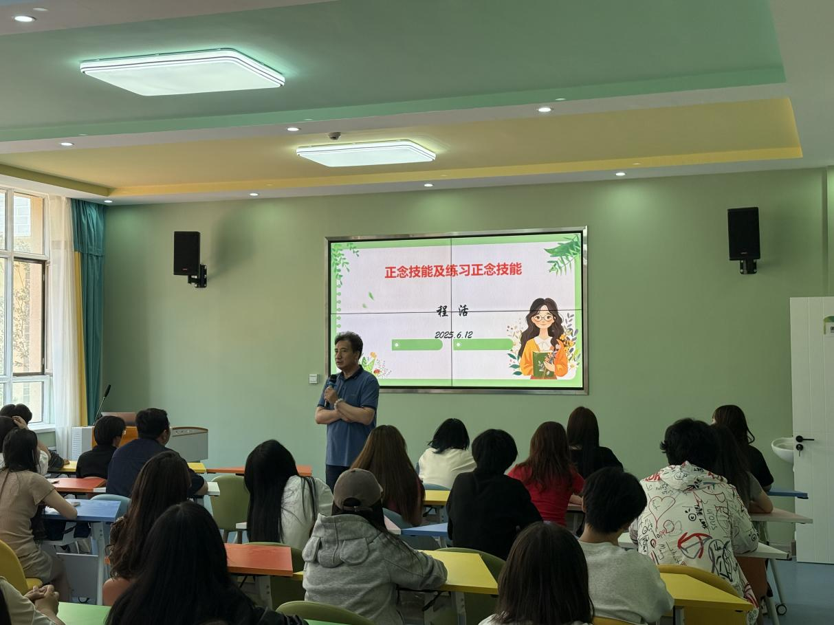 l 2025年6月12日下午,心理健康服务中心主任为24级参观学生开展了主题为《正念技能及练习正念技能》的培训。