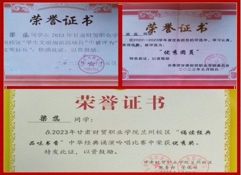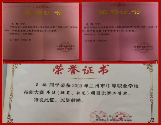 1.兰州市技能大赛书法项目比赛市级二等奖;