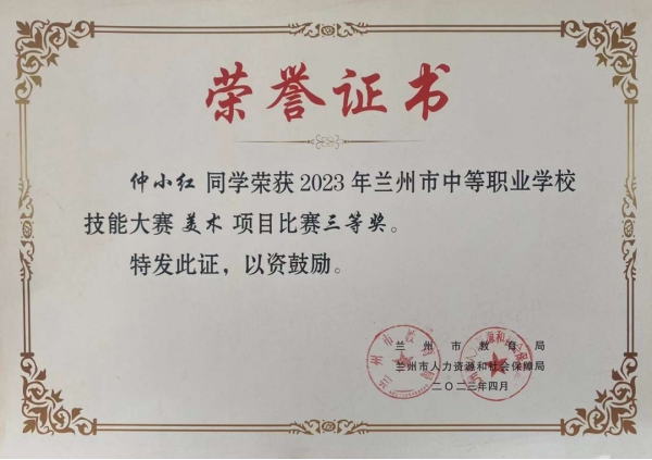 1.2003年兰州市中等职业学校技能大赛美术项目三等奖