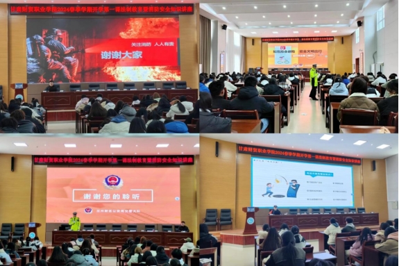 2月29日下午,兰州新区公安局宣讲团应邀到我院开展法治教育暨消防安全教育知识讲座。学院学生处、安全保卫处工作人员及二级学院师生代表参加,讲座由安全保卫处负责人主持。未到场的学生以观看直播视频的方式学习。