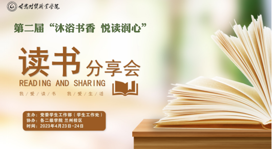 为进一步激发我院青年学生读书的兴趣,营造浓厚的读书氛围,引导广大学生养成“爱读书、爱分享、会读书、会分享”的良好习惯,推动学院“书香校园”建设。4月23日、24日,在第28个世界读书日到来之际,由学生工作处主办、各二级学院和兰州校区协办,共同为全院师生呈现了第二届“沐浴书香 悦读润心”读书分享会。学院党委副书记郭志强、副院长何科鹏、副院长张常俊出席,党委组织部、党委宣传统战部、学生工作处、各二级学院相关负责人、全体专职辅导员及师生代表参加分享会。分享会同步面向全院进行“云端”分享。