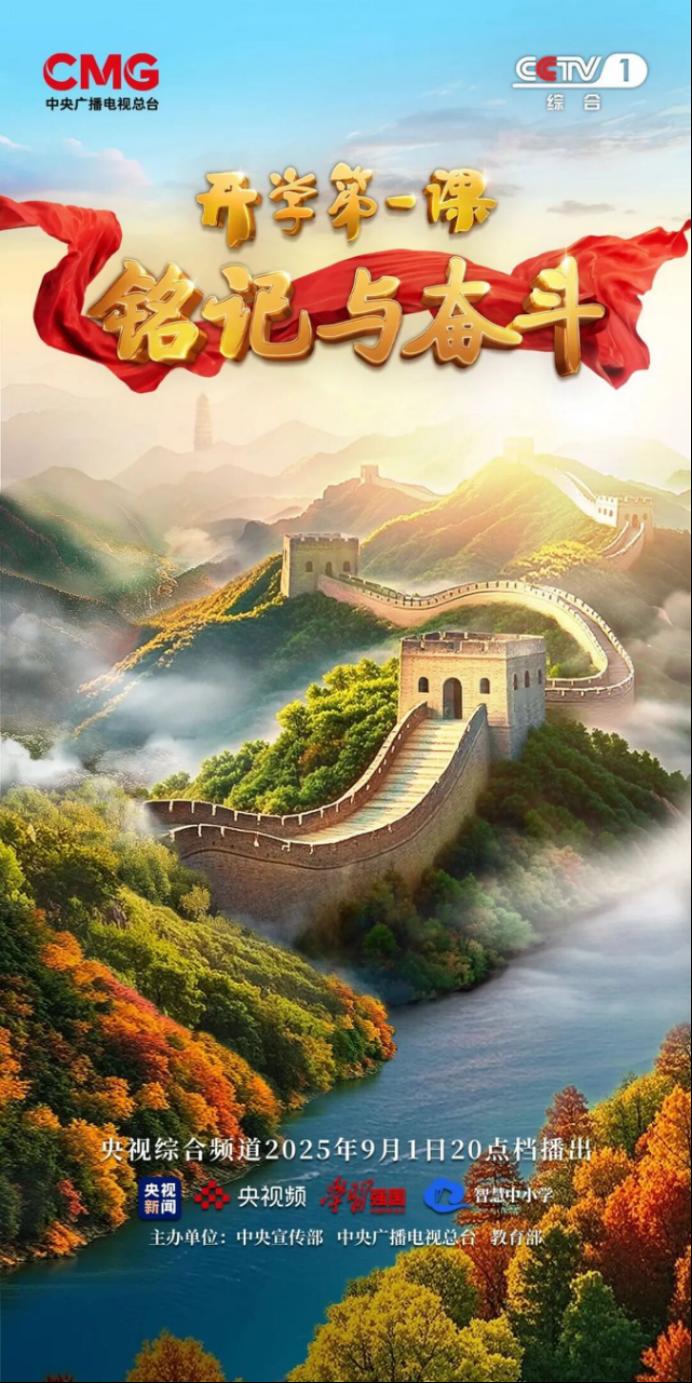 校院两级学生会骨干、各社团学生负责人等,共同沉浸于这场意义非凡的“开学第一课”。本次《开学第一课》以“铭记与奋斗”为主题,通过数字化场景再现、沉浸式讲述、实景课堂等多种呈现方式,生动讲述抗战故事,弘扬伟大抗战精神,引导广大青少年铭记历史、缅怀先烈、珍爱和平、开创未来。为全国青少年带来了一场极具思想性、艺术性的视听盛宴与精神洗礼。