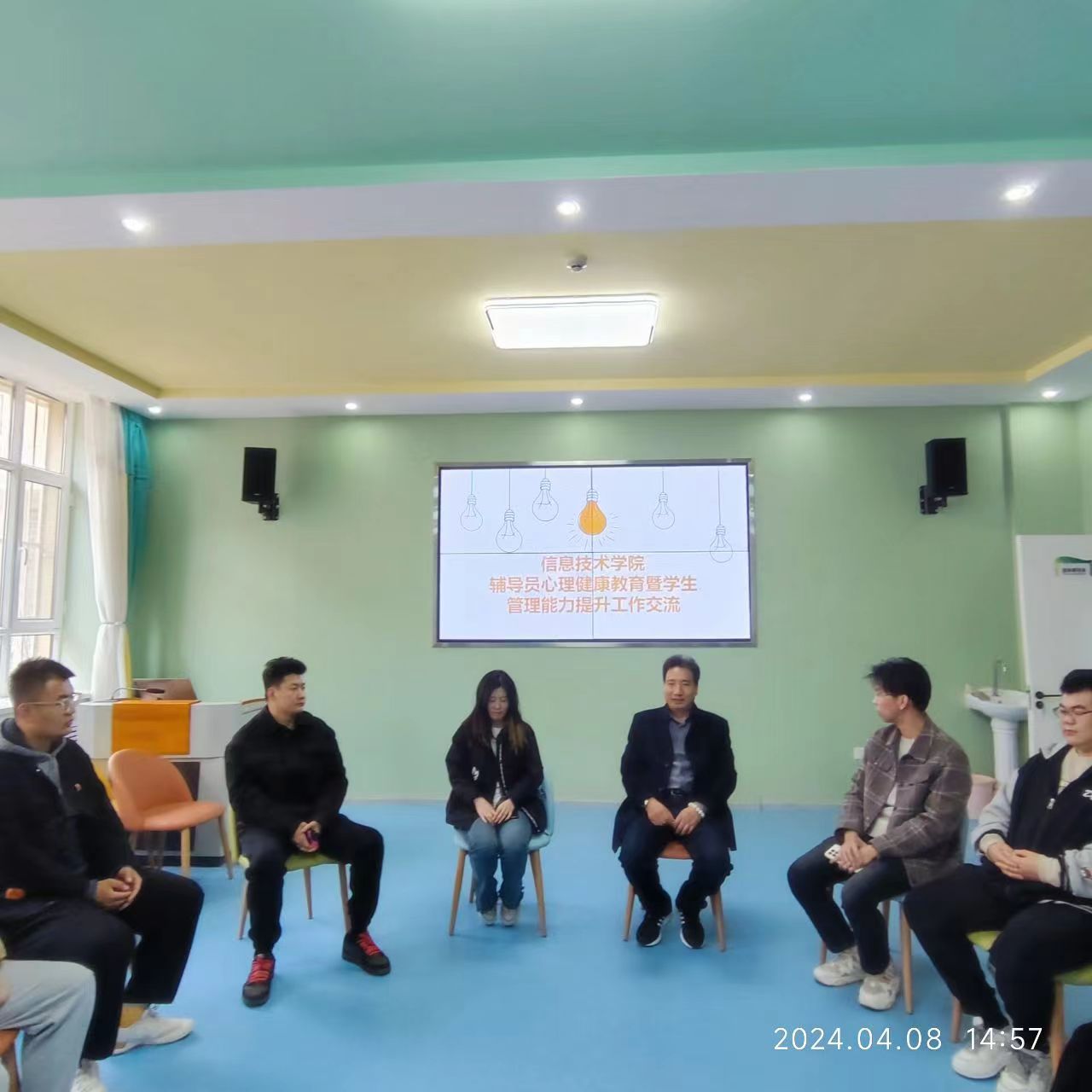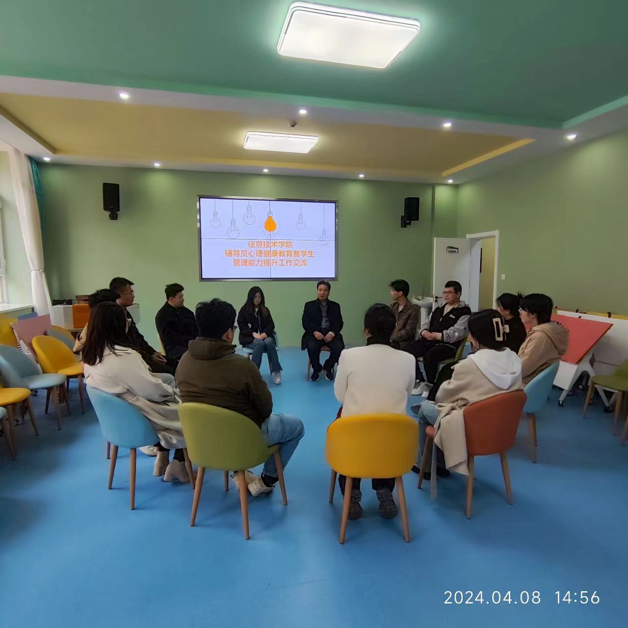 针对拔节孕穗期的大学生,为引导教育其扣好人生的第一粒扣子,辅导员在心理健康教育和学生管理方面扮演着举足轻重的角色。为了进一步提升我院辅导员的专业素养和工作能力,4月8日下午,信息技术学院在心理健康中心,开展了辅导员心理健康教育暨学生管理能力提升工作交流活动。