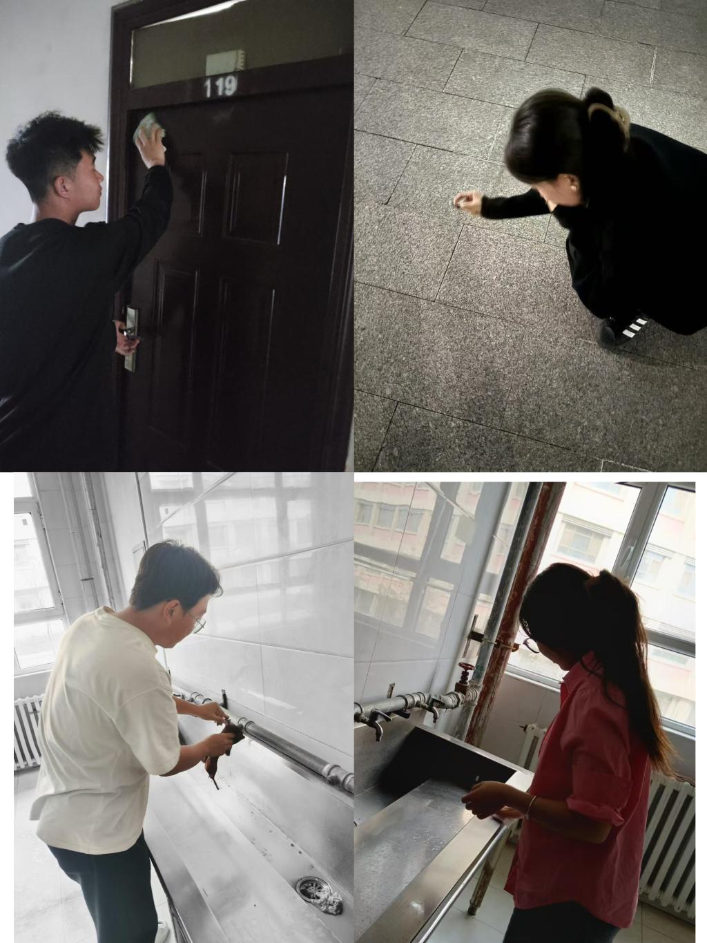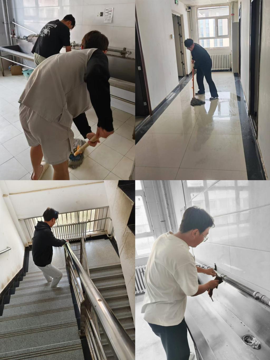 活动中,同学们按照分工,有的扫地、有的拖地、有的擦窗户、有的捡烟头、有的整理杂物、有的清理卫生死角……经过数小时的努力,打扫区域有了明显的变化,地净窗明,桌椅整齐,环境焕然一新。