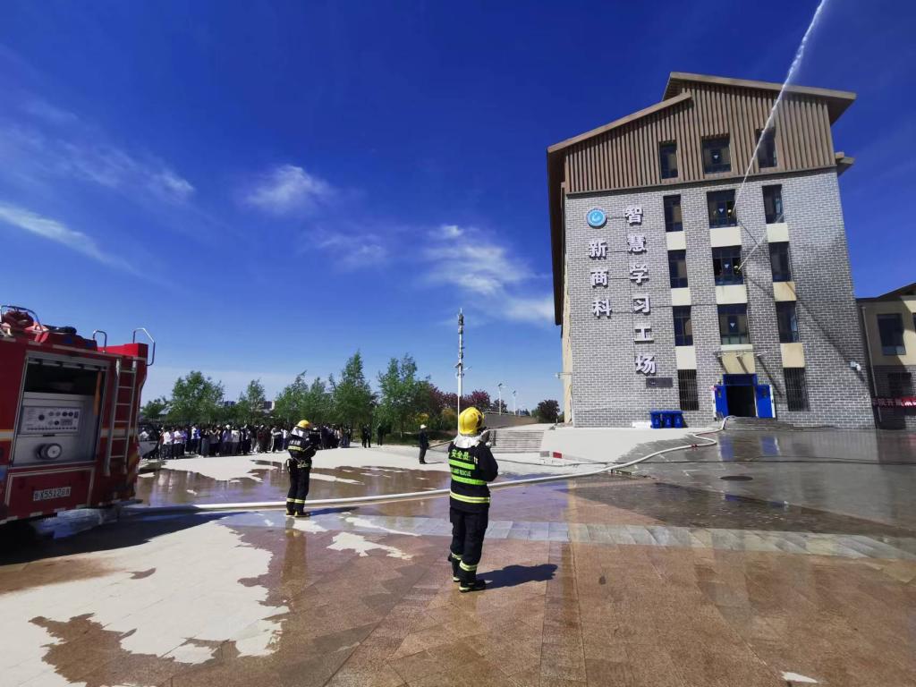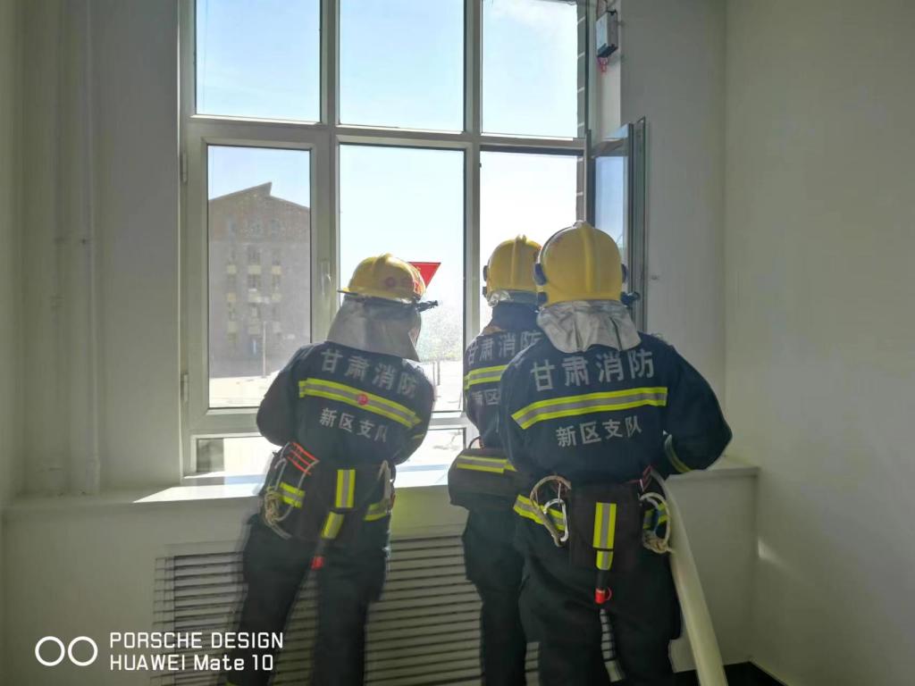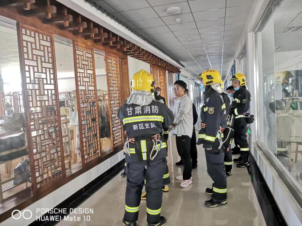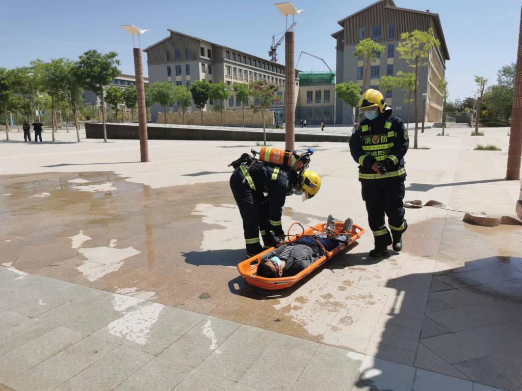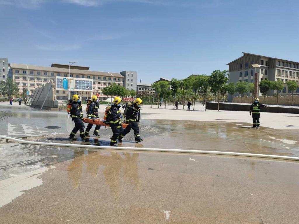 2022年5月24日,在全国第十四个防灾减灾月期间,兰州新区西岔消防救援站在我院18号教学楼开展消防救援模拟演练。此次演练的目的是进一步在实践中增强师生安全逃生和防火救灾的安全意识,也是配合救援站进一步了解学院楼宇布局,如遇紧急情况,也可使救援站人员第一时间到达出警区域,切实减轻火灾带来的危害。安全保卫处负责同志、艺术设计学院负责同志、安保处全体人员、鑫源安保公司保安、旭阳消防维保公司人员、18号楼宇上课师生参与此次演练活动。