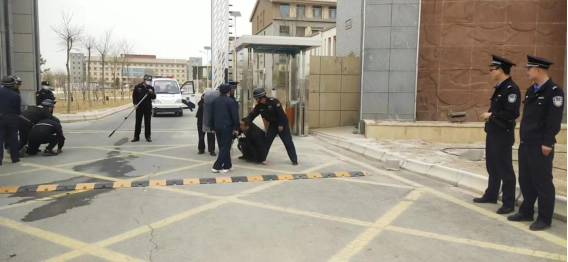 恐怖分子见进门无果,开始与安保人员发生争执,推搡安保人员,与此同时,南门值班安保人员立即闭门报告学院值班领导,并立即打电话给应急防暴组并拨打“110”电话报警。