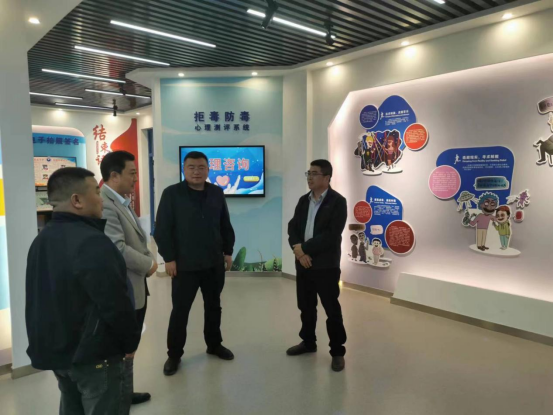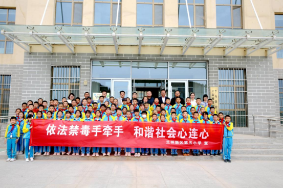 5月17日,兰州新区第五小学支部书记刘万仓、政教主任魏广惠、工会主席邓全民带领师生代表,参观学校毒品教育基地。中川镇副镇长秦鑫、中川司法所所长陈鹏、兰州新区中川区民政和社会保障局马娜娜主任受邀一同参观。