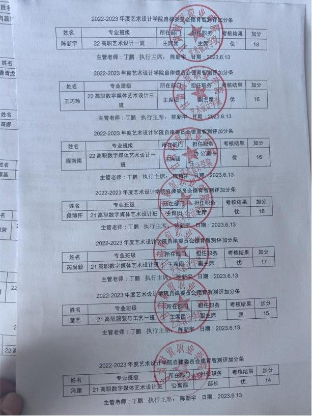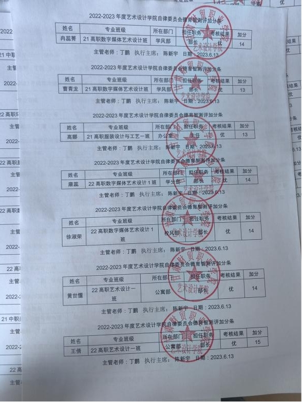 2023年6月14日,完成诚实守信视频上报。6月15日完成自律委员会加分统计。